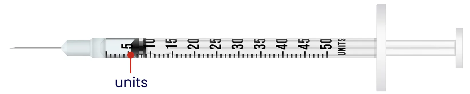 Example: You might be prescribed 20 units, which tells you how much volume of fluid to inject.